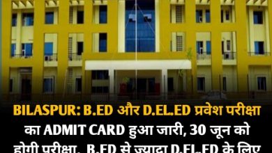BILASPUR: B.ED और D.EL.ED प्रवेश परीक्षा का ADMIT CARD हुआ जारी, 30 जून को होगी परीक्षा, B.ED से ज्यादा D.EL.ED के लिए कंपीटिशन… OPEN UNIVERSITY का EXAM अब इस DATE को………