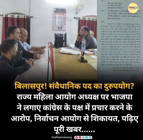 बिलासपुर! संवैधानिक पद का दुरुपयोग? राज्य महिला आयोग अध्यक्ष पर भाजपा ने लगाए कांग्रेस के पक्ष में प्रचार करने के आरोप, निर्वाचन आयोग से शिकायत, पढ़िए पूरी खबर……