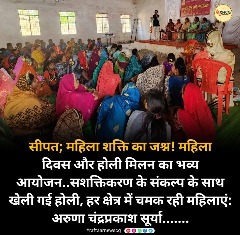 सीपत; महिला शक्ति का जश्न! महिला दिवस और होली मिलन का भव्य आयोजन..सशक्तिकरण के संकल्प के साथ खेली गई होली, हर क्षेत्र में चमक रही महिलाएं: अरुणा चंद्रप्रकाश सूर्या…….