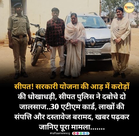 सीपत! सरकारी योजना की आड़ में करोड़ों की धोखाधड़ी, सीपत पुलिस ने दबोचे दो जालसाज..30 एटीएम कार्ड, लाखों की संपत्ति और दस्तावेज बरामद, खबर पढ़कर जानिए पूरा मामला…….