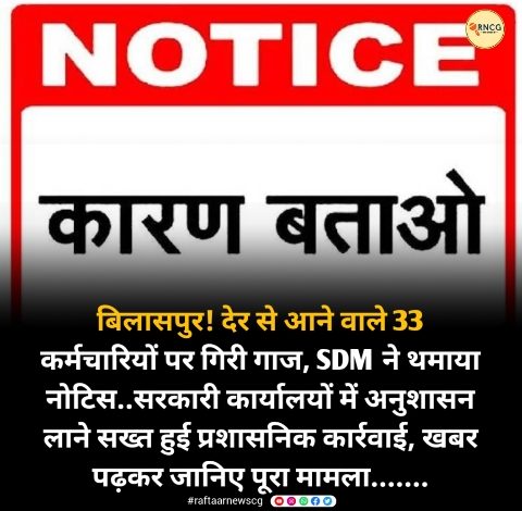 बिलासपुर! देर से आने वाले 33 कर्मचारियों पर गिरी गाज, SDM ने थमाया नोटिस..सरकारी कार्यालयों में अनुशासन लाने सख्त हुई प्रशासनिक कार्रवाई, खबर पढ़कर जानिए पूरा मामला…….