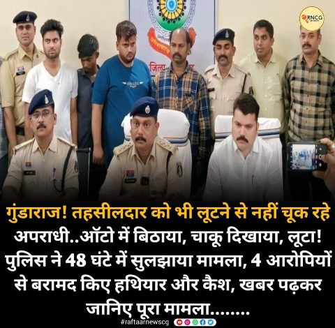 गुंडाराज! तहसीलदार को भी लूटने से नहीं चूक रहे अपराधी..ऑटो में बिठाया, चाकू दिखाया, लूटा! पुलिस ने 48 घंटे में सुलझाया मामला, 4 आरोपियों से बरामद किए हथियार और कैश, खबर पढ़कर जानिए पूरा मामला……..