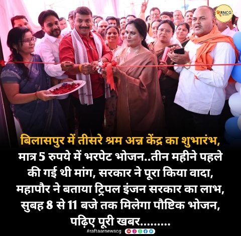 बिलासपुर में तीसरे श्रम अन्न केंद्र का शुभारंभ, मात्र 5 रुपये में भरपेट भोजन..तीन महीने पहले की गई थी मांग, सरकार ने पूरा किया वादा, महापौर ने बताया ट्रिपल इंजन सरकार का लाभ, सुबह 8 से 11 बजे तक मिलेगा पौष्टिक भोजन, पढ़िए पूरी खबर………