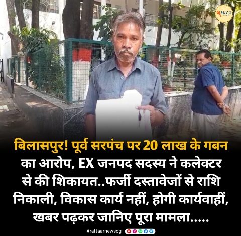 बिलासपुर! पूर्व सरपंच पर 20 लाख के गबन का आरोप, EX जनपद सदस्य ने कलेक्टर से की शिकायत..फर्जी दस्तावेजों से राशि निकाली, विकास कार्य नहीं, होगी कार्यवाहीं, खबर पढ़कर जानिए पूरा मामला…..