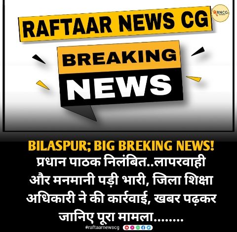 BILASPUR; BIG BREKING NEWS! प्रधान पाठक निलंबित..लापरवाही और मनमानी पड़ी भारी, जिला शिक्षा अधिकारी ने की कार्रवाई, खबर पढ़कर जानिए पूरा मामला……..