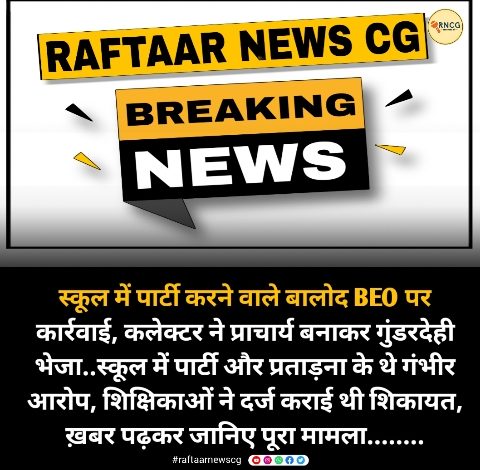 स्कूल में पार्टी करने वाले बालोद BEO पर कार्रवाई, कलेक्टर ने प्राचार्य बनाकर गुंडरदेही भेजा..स्कूल में पार्टी और प्रताड़ना के थे गंभीर आरोप, शिक्षिकाओं ने दर्ज कराई थी शिकायत, ख़बर पढ़कर जानिए पूरा मामला……..