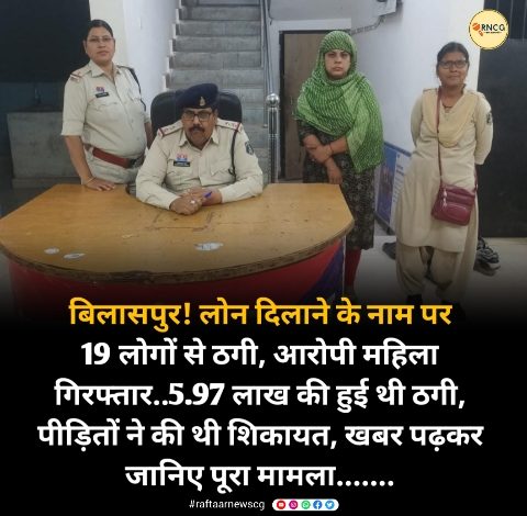 बिलासपुर! लोन दिलाने के नाम पर 19 लोगों से ठगी, आरोपी महिला गिरफ्तार..5.97 लाख की हुई थी ठगी, पीड़ितों ने की थी शिकायत, खबर पढ़कर जानिए पूरा मामला…….