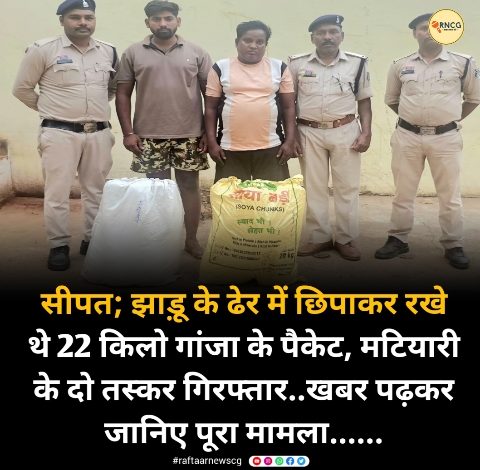 सीपत; झाड़ू के ढेर में छिपाकर रखे थे 22 किलो गांजा के पैकेट, मटियारी के दो तस्कर गिरफ्तार..खबर पढ़कर जानिए पूरा मामला……