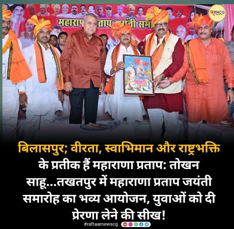 बिलासपुर; वीरता, स्वाभिमान और राष्ट्रभक्ति के प्रतीक हैं महाराणा प्रताप: तोखन साहू…तखतपुर में महाराणा प्रताप जयंती समारोह का भव्य आयोजन, युवाओं को दी प्रेरणा लेने की सीख!