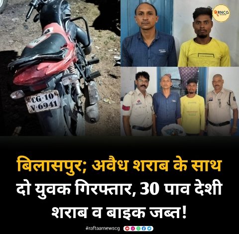 बिलासपुर; अवैध शराब के साथ दो युवक गिरफ्तार, 30 पाव देशी शराब व बाइक जब्त!