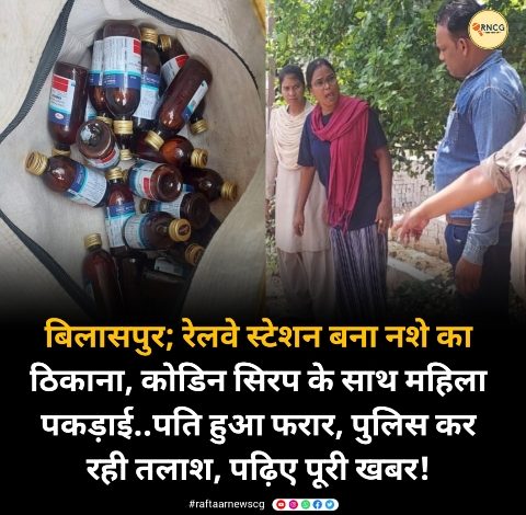 बिलासपुर; रेलवे स्टेशन बना नशे का ठिकाना, कोडिन सिरप के साथ महिला पकड़ाई..पति हुआ फरार, पुलिस कर रही तलाश, पढ़िए पूरी खबर!