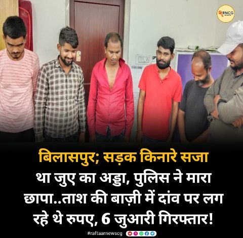 बिलासपुर; सड़क किनारे सजा था जुए का अड्डा, पुलिस ने मारा छापा..ताश की बाज़ी में दांव पर लग रहे थे रुपए, 6 जुआरी गिरफ्तार!