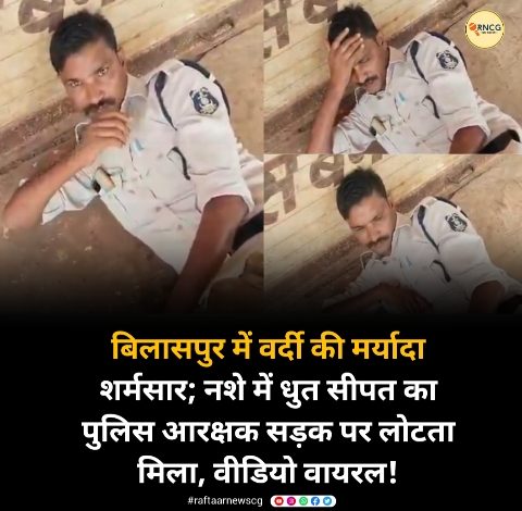 बिलासपुर में वर्दी की मर्यादा शर्मसार; नशे में धुत सीपत का पुलिस आरक्षक सड़क पर लोटता मिला, वीडियो वायरल!