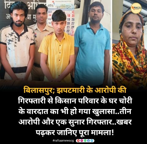 बिलासपुर; झपटमारी के आरोपी की गिरफ्तारी से किसान परिवार के घर चोरी के वारदात का भी हो गया खुलासा..तीन आरोपी और एक सुनार गिरफ्तार..खबर पढ़कर जानिए पूरा मामला!