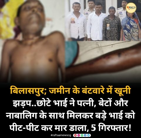 बिलासपुर; जमीन के बंटवारे में खूनी झड़प..छोटे भाई ने पत्नी, बेटों और नाबालिग के साथ मिलकर बड़े भाई को पीट-पीट कर मार डाला, 5 गिरफ्तार!