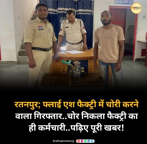 रतनपुर; फ्लाई एश फैक्ट्री में चोरी करने वाला गिरफ्तार..चोर निकला फैक्ट्री का ही कर्मचारी..पढ़िए पूरी खबर!
