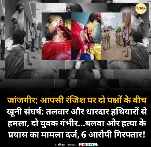 जांजगीर; आपसी रंजिश पर दो पक्षों के बीच खूनी संघर्ष: तलवार और धारदार हथियारों से हमला, दो युवक गंभीर…बलवा और हत्या के प्रयास का मामला दर्ज, 6 आरोपी गिरफ्तार!
