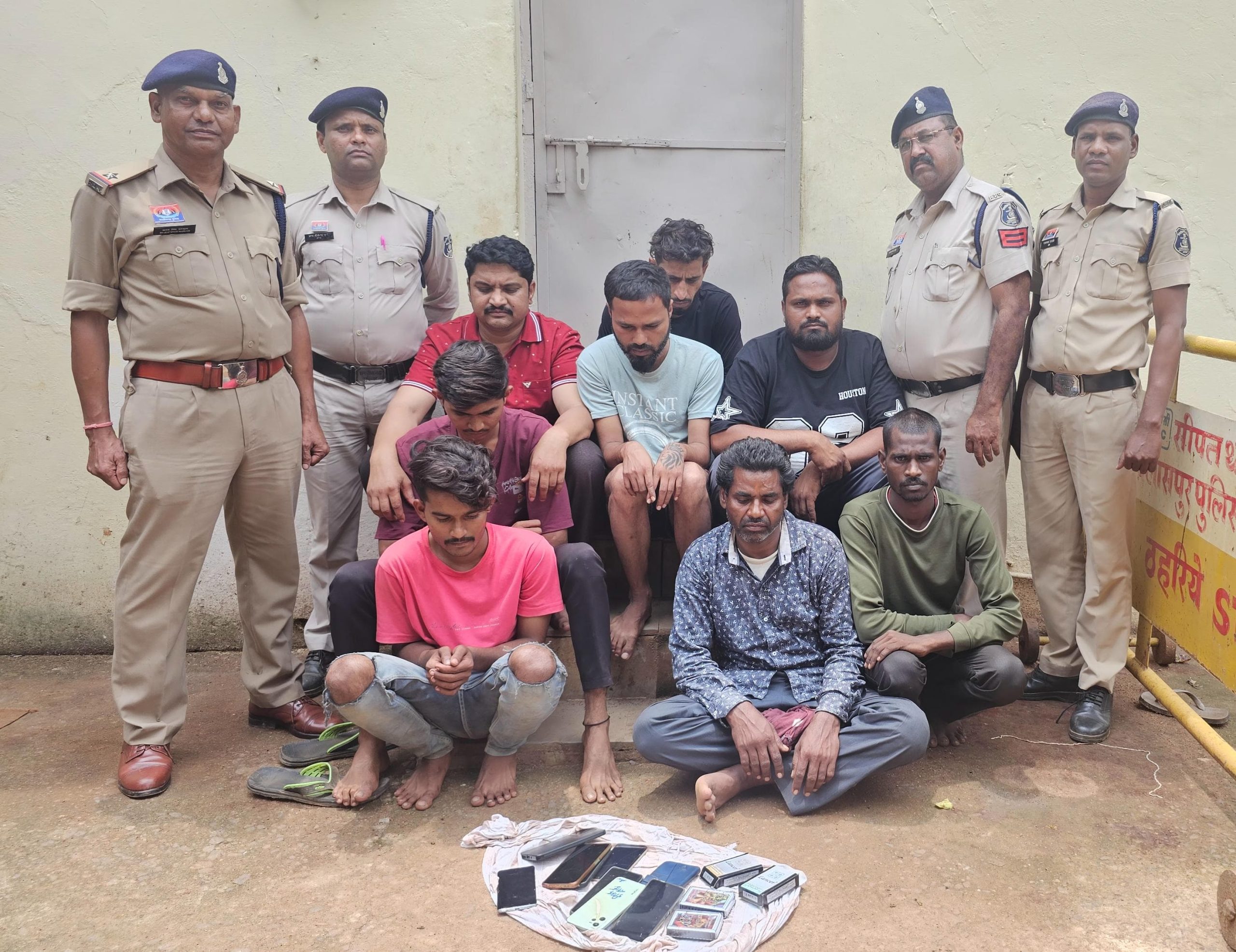 बिलासपुर: (प्रांशु क्षत्रिय) थाना सीपत पुलिस ने ग्राम लुतरा शरीफ नहर के पास संचालित जुआ फड़ पर बड़ी कार्रवाई करते हुए आठ जुआड़ियों को रंगे हाथ पकड़ लिया। पकड़े गए आरोपियों पर नवीन कानून के तहत संगठित अपराध की धारा 112 बीएनएस और छत्तीसगढ़ जुआ प्रतिषेध अधिनियम की धारा 3(2) के तहत मामला दर्ज कर न्यायिक रिमांड पर जेल भेजा गया है। मुखबिर से मिली सूचना पर पुलिस ने घेराबंदी कर यह कार्रवाई की। पुलिस के मुताबिक ग्राम लुतरा निवासी शेख सफर और ग्राम झलमला निवासी शेख अफजल मिलकर इलाके में जुआ खेलाकर संगठित अपराध को अंजाम दे रहे थे। छापे में मौके से कुल 9 मोबाइल फोन, 52 पत्ती ताश और 7450 रुपये नगद बरामद हुए। पुलिस ने बताया कि शेख सफर और शेख अफजल द्वारा इलाके में लंबे समय से जुआ फड़ संचालित कर संगठित अपराध किया जा रहा था, जिस पर कार्रवाई करते हुए सभी आरोपियों को जेल दाखिल किया गया है।