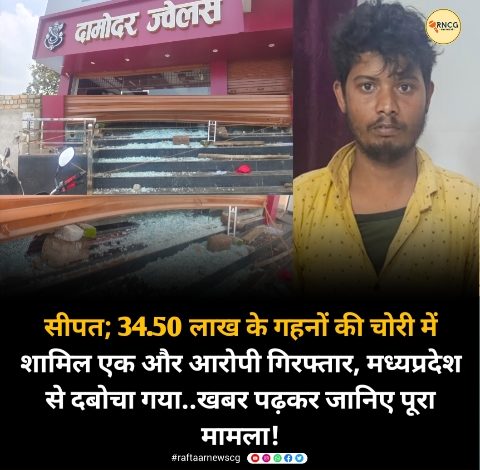 सीपत; 34.50 लाख के गहनों की चोरी में शामिल एक और आरोपी गिरफ्तार, मध्यप्रदेश से दबोचा गया..खबर पढ़कर जानिए पूरा मामला!