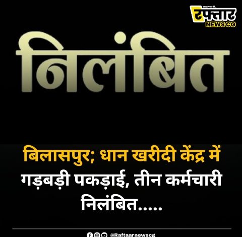 बिलासपुर; धान खरीदी केंद्र में गड़बड़ी पकड़ाई, तीन कर्मचारी निलंबित…..