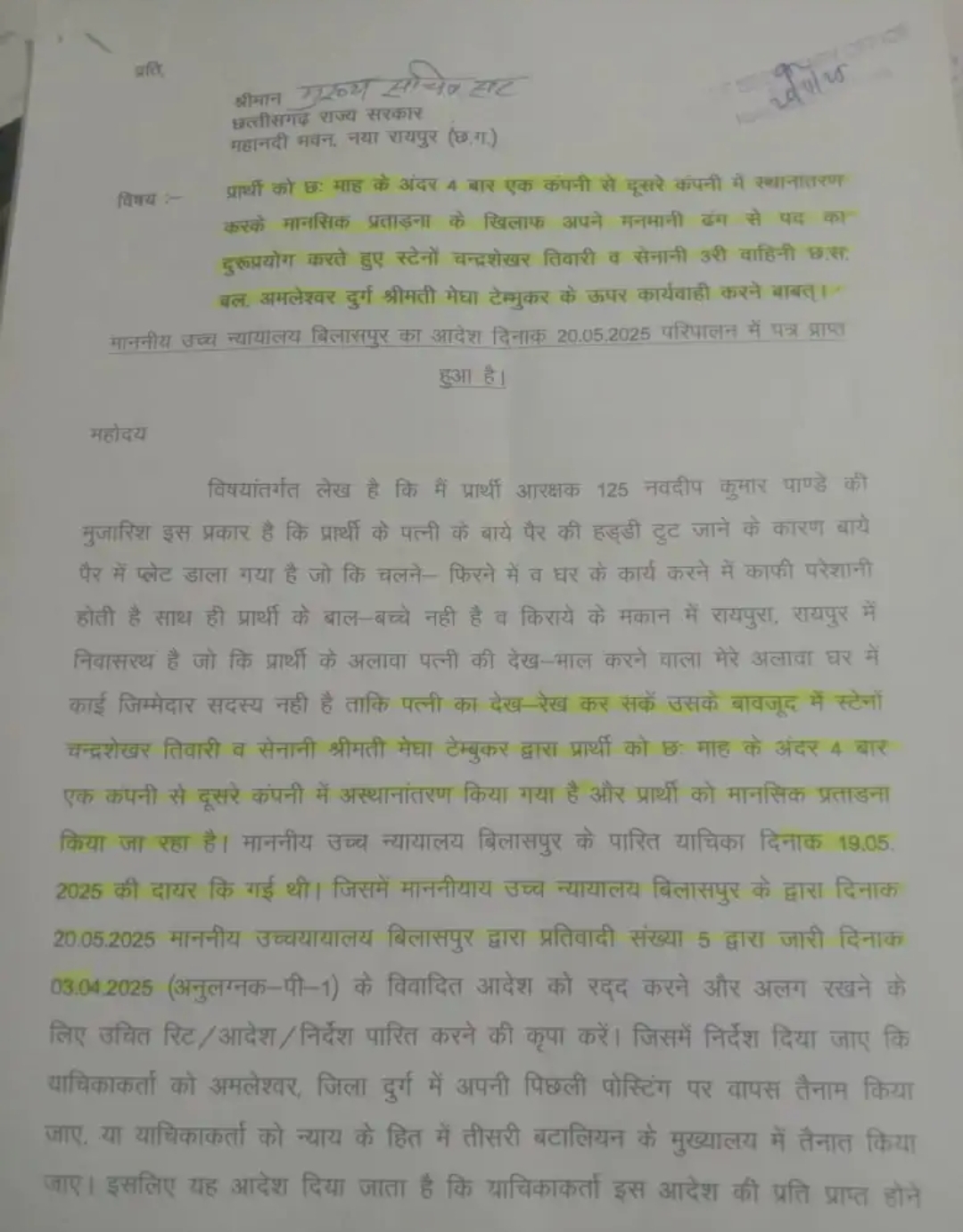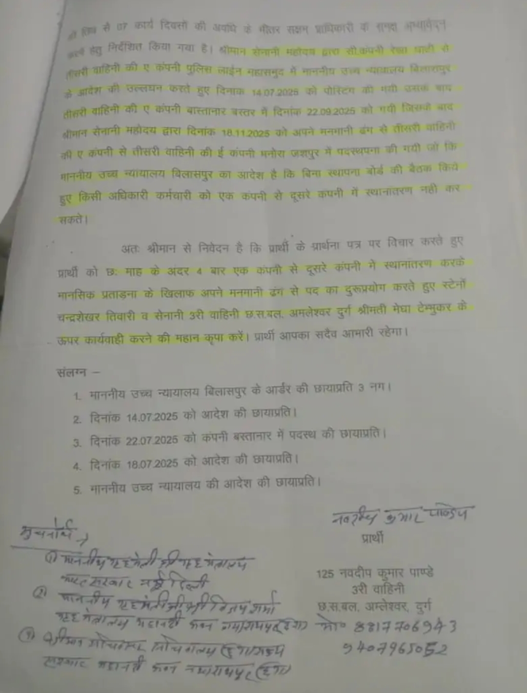 छत्तीसगढ़ पुलिस में ट्रांसफर–पोस्टिंग विवाद, जवान ने महिला कमांडेंट पर लगाये गंभीर आरोप, अधिकारी ने आरोपों को बताया बेबुनियाद……