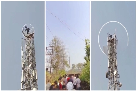 VIDEO; पत्नी से विवाद के बाद युवक ने मोबाइल टावर पर चढ़कर मचाया हंगामा, घंटेभर चला हाई वोल्टेज ड्रामा…..