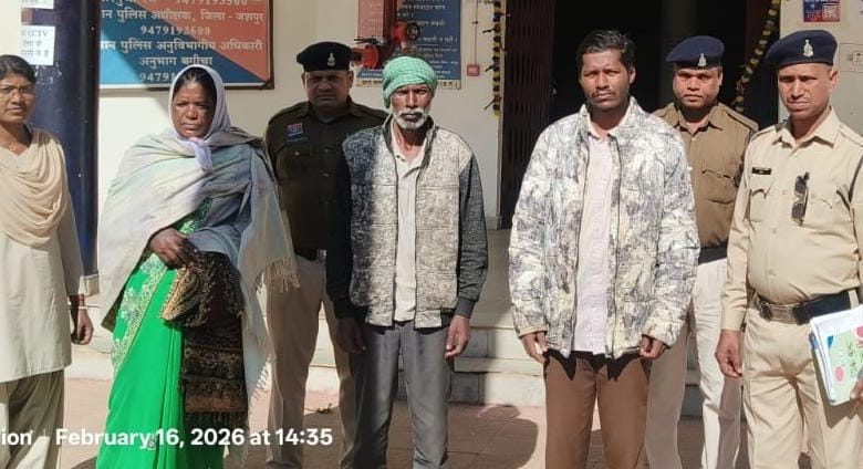 जशपुर: (प्रांशु क्षत्रिय) जशपुर पुलिस ने पारिवारिक विवाद में बेटे को जिंदा जलाने की कोशिश के सनसनीखेज मामले में पिता, मां और भाई को गिरफ्तार कर जेल भेज दिया है। मामला थाना नारायणपुर क्षेत्र का है। पुलिस के अनुसार नारायणपुर निवासी कामना भगत ने 15 फरवरी को चौकी होलीक्रॉस हॉस्पिटल अंबिकापुर में रिपोर्ट दर्ज कराई। शिकायत में बताया गया कि दो वर्ष पूर्व जमीन बिक्री के बाद से उसका पति कौशल यादव (30) अपने हिस्से की राशि मांग रहा था। इसी बात को लेकर 13 फरवरी को विवाद बढ़ गया। आरोप है कि पिता शिवशंकर यादव (55), मां चन्द्रमुनी भगत (47) और भाई अंकुश यादव (27) ने मिलकर कौशल यादव से मारपीट की और जान से मारने की धमकी दी। इसी दौरान पिता ने बेटे पर पेट्रोल छिड़ककर माचिस जला दी, जिससे वह गंभीर रूप से झुलस गया। घायल का उपचार अंबिकापुर के होलीक्रॉस अस्पताल में जारी है। मामला थाना नारायणपुर में अपराध क्रमांक 15/2026 के तहत भारतीय न्याय संहिता (बीएनएस) की धाराओं 296, 351(3), 115(2), 109(1) व 3(5) में दर्ज किया गया है। पुलिस ने त्वरित कार्रवाई करते हुए तीनों आरोपियों को गिरफ्तार कर न्यायिक रिमांड पर जेल भेज दिया है। कार्रवाई में पुलिस टीम की महत्वपूर्ण भूमिका रही। पुलिस मामले की विस्तृत विवेचना कर रही है।