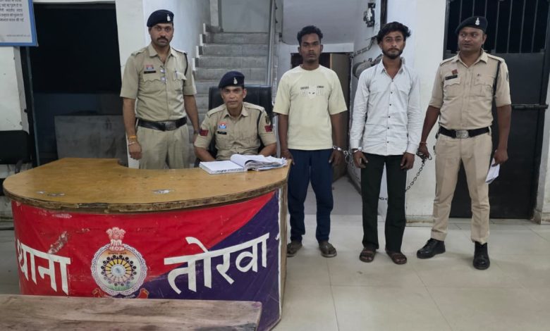 बिलासपुर: (प्रांशु क्षत्रिय) तोरवा थाना क्षेत्र में स्थित मुल्कराज होटल के बाहर हुई मारपीट के मामले में पुलिस ने दो आरोपियों को गिरफ्तार किया है। घटना का वीडियो सोशल मीडिया पर वायरल होने के बाद पुलिस ने त्वरित कार्रवाई करते हुए मामला दर्ज कर जांच शुरू की थी। पुलिस के अनुसार, 14 अप्रैल 2026 की रात करीब 12:15 बजे मुल्कराज होटल के सामने मोटरसाइकिल गिराने की बात को लेकर विवाद हुआ, जो देखते ही देखते मारपीट में बदल गया। घटना का वीडियो सामने आने के बाद थाना तोरवा में अपराध क्रमांक 192/2026 के तहत धारा 296, 351(3), 115(2), 3(5) BNS में मामला दर्ज किया गया। जांच के दौरान पुलिस ने दो आरोपियों—प्रवीण रजक उर्फ दारा (27 वर्ष) निवासी हेमुनगर और सुमित कुर्मी (23 वर्ष) निवासी बाम्बे आवास, हेमुनगर—को गिरफ्तार किया। पुलिस ने दोनों आरोपियों के खिलाफ प्रतिबंधात्मक कार्रवाई भी करते हुए धारा 170, 126, 135 BNSS के तहत इस्तगाशा तैयार कर उनका आपराधिक रिकॉर्ड संलग्न करते हुए सिटी मजिस्ट्रेट न्यायालय में पेश किया है। पुलिस का कहना है कि सार्वजनिक स्थानों पर इस तरह की मारपीट और कानून व्यवस्था बिगाड़ने वाले तत्वों के खिलाफ सख्त कार्रवाई जारी रहेगी।