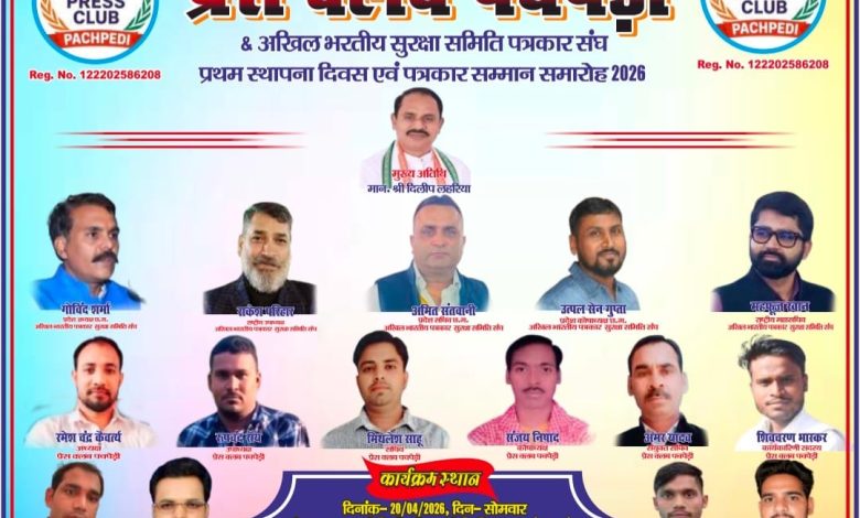 बिलासपुर; पचपेड़ी प्रेस क्लब का शपथ समारोह आज: रेस्ट हाउस पचपेड़ी में दोपहर 12 बजे होगा आयोजन, विधायक दिलीप लहरिया होंगे मुख्य अतिथि!