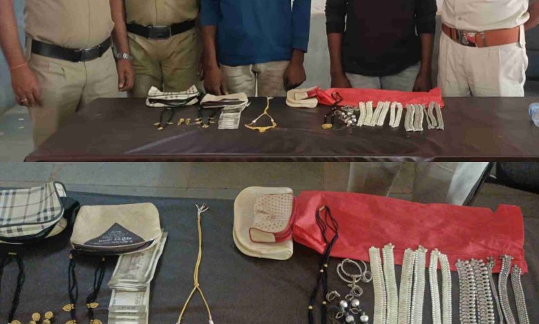 सीपत: (प्रांशु क्षत्रिय) ग्राम हिंडाडीह में हुई एक बड़ी चोरी का पर्दाफाश करते हुए दो आरोपियों को गिरफ्तार किया है। आरोपी रामेश्वर यादव (19) और रोहित दास मानिकपुरी उर्फ राहूल (27) को चोरी के आरोप में पकड़ा गया, और उनसे चोरी का माल पूरी तरह बरामद कर लिया गया। ग्राम हिंडाडीह की निवासी श्यामकली मरावी ने 22 अप्रैल 2026 को रिपोर्ट दर्ज कराई थी कि वह घर में ताला लगाकर शादी कार्यक्रम में गई थीं। लौटने पर उन्हें घर में ताला टूटा हुआ मिला, और आलमारी में रखे सोने और चांदी के गहने तथा नगदी चोरी हो चुकी थी। चोरी गए सामान की कुल कीमत करीब 5.60 लाख रुपये थी, जिसमें सोने का मंगलसूत्र, हार, लॉकेट, झुमका, चांदी का पायल, करधन, चूड़ा और नगदी शामिल थे। सीपत पुलिस ने त्वरित कार्रवाई करते हुए घुमंतू डेरा लगाने वालों और संदिग्ध व्यक्तियों की चेकिंग अभियान चलाया। इस दौरान, पुलिस ने आरोपी रामेश्वर यादव को हिरासत में लेकर पूछताछ की, जिसने अपने साथी रोहित दास के साथ मिलकर चोरी करने की बात कबूल की। आरोपी ने यह भी बताया कि दोनों ने श्यामकली के घर में घुसकर चोरी की थी और सामान को खांडा खांर में जमीन में छिपा दिया था। पुलिस ने आरोपियों की निशानदेही पर चोरी का पूरा माल बरामद किया, जिसमें सोने का मंगलसूत्र, हार, लॉकेट, झुमका, चांदी का पायल, करधन, चूड़ा और नगदी 14,000 रुपये शामिल हैं। सभी सामान की कुल कीमत लगभग 5.60 लाख रुपये आंकी गई है। आरोपियों को गिरफ्तार कर न्यायिक रिमांड पर भेज दिया गया है। पुलिस द्वारा की गई त्वरित कार्रवाई को लेकर उपमहानिरीक्षक एवं वरिष्ठ पुलिस अधीक्षक श्री रजनेश सिंह ने सीपत पुलिस की सराहना की है। उन्होंने घुमंतू डेरा लगाने वालों, फेरी लगाने वालों और संदिग्ध व्यक्तियों की चेकिंग का विशेष अभियान चलाने का निर्देश दिया था।