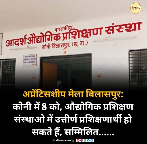 अप्रेंटिसशीप मेला बिलासपुर: कोनी में 8 को, औद्योगिक प्रशिक्षण संस्थाओ में उत्तीर्ण प्रशिक्षणार्थी हो सकते हैं, सम्मिलित……