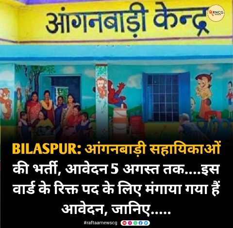 BILASPUR: आंगनबाड़ी सहायिकाओं की भर्ती, आवेदन 5 अगस्त तक….इस वार्ड के रिक्त पद के लिए मंगाया गया हैं आवेदन, जानिए…..