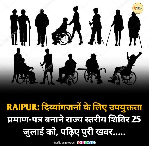 RAIPUR: दिव्यांगजनों के लिए उपयुक्तता प्रमाण-पत्र बनाने राज्य स्तरीय शिविर 25 जुलाई को, पढ़िए पुरी खबर…..