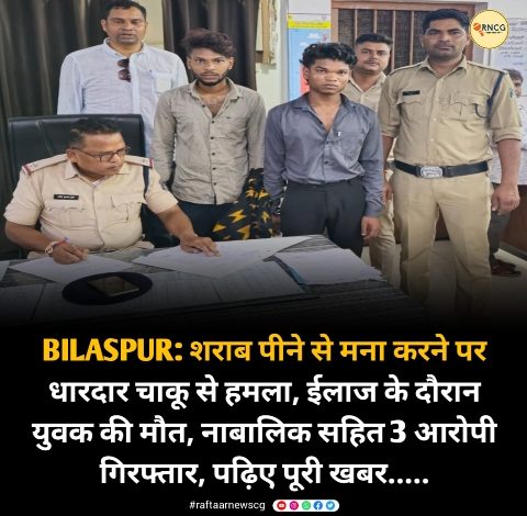 BILASPUR: शराब पीने से मना करने पर धारदार चाकू से हमला, ईलाज के दौरान युवक की मौत, नाबालिक सहित 3 आरोपी गिरफ्तार, पढ़िए पूरी खबर…..