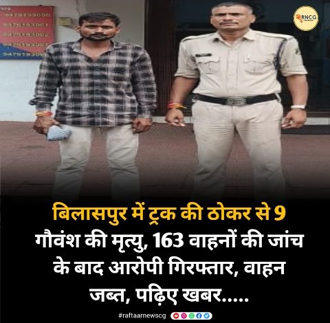 बिलासपुर में ट्रक की ठोकर से 9 गौवंश की मृत्यु, 163 वाहनों की जांच के बाद आरोपी गिरफ्तार, वाहन जब्त, पढ़िए खबर…..
