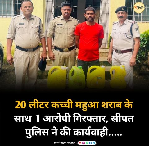 20 लीटर कच्ची महुआ शराब के साथ 1 आरोपी गिरफ्तार, सीपत पुलिस ने की कार्यवाही…..