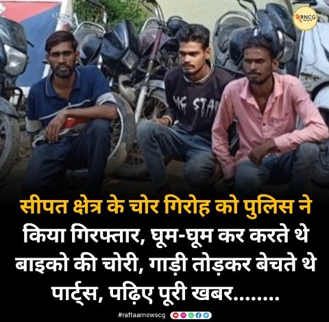 सीपत क्षेत्र के चोर गिरोह को पुलिस ने किया गिरफ्तार, घूम-घूम कर करते थे बाइको की चोरी, गाड़ी तोड़कर बेचते थे पार्ट्स, पढ़िए पूरी खबर……..