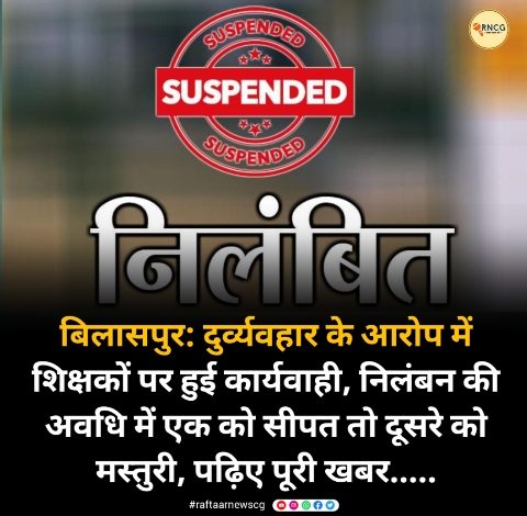 बिलासपुर: दुर्व्यवहार के आरोप में शिक्षकों पर हुई कार्यवाही, निलंबन की अवधि में एक को सीपत तो दूसरे को मस्तुरी, पढ़िए पूरी खबर…..