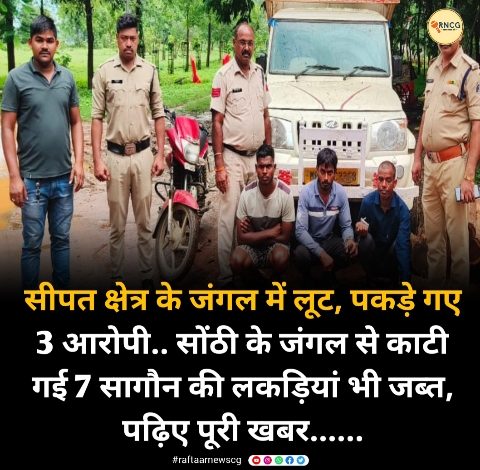 सीपत क्षेत्र के जंगल में लूट, पकड़े गए 3 आरोपी.. सोंठी के जंगल से काटी गई 7 सागौन की लकड़ियां भी जब्त, पढ़िए पूरी खबर……