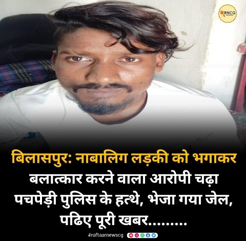 बिलासपुर: नाबालिग लड़की को भगाकर बलात्कार करने वाला आरोपी चढ़ा पचपेड़ी पुलिस के हत्थे, भेजा गया जेल, पढिए पूरी खबर………