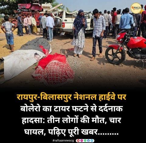 रायपुर-बिलासपुर नेशनल हाईवे पर बोलेरो का टायर फटने से दर्दनाक हादसा: तीन लोगों की मौत, चार घायल, पढ़िए पूरी खबर………