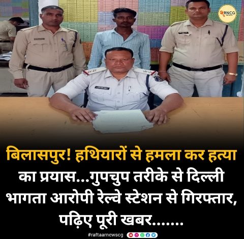 बिलासपुर! हथियारों से हमला कर हत्या का प्रयास…गुपचुप तरीके से दिल्ली भागता आरोपी रेल्वे स्टेशन से गिरफ्तार, पढ़िए पूरी खबर…….