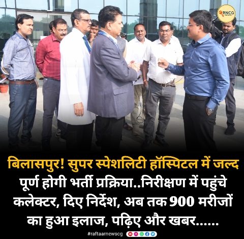 बिलासपुर! सुपर स्पेशलिटी हॉस्पिटल में जल्द पूर्ण होगी भर्ती प्रक्रिया..निरीक्षण में पहुंचे कलेक्टर, दिए निर्देश, अब तक 900 मरीजों का हुआ इलाज, पढ़िए और खबर……