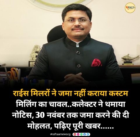 राईस मिलरों ने जमा नहीं कराया कस्टम मिलिंग का चावल..कलेक्टर ने थमाया नोटिस, 30 नवंबर तक जमा करने की दी मोहलत, पढ़िए पूरी खबर……