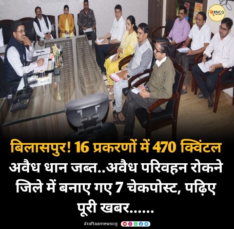 बिलासपुर! 16 प्रकरणों में 470 क्विंटल अवैध धान जब्त..अवैध परिवहन रोकने जिले में बनाए गए 7 चेकपोस्ट, पढ़िए पूरी खबर……
