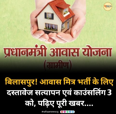 बिलासपुर! आवास मित्र भर्ती के लिए दस्तावेज सत्यापन एवं काउंसलिंग 3 को, पढ़िए पूरी खबर….