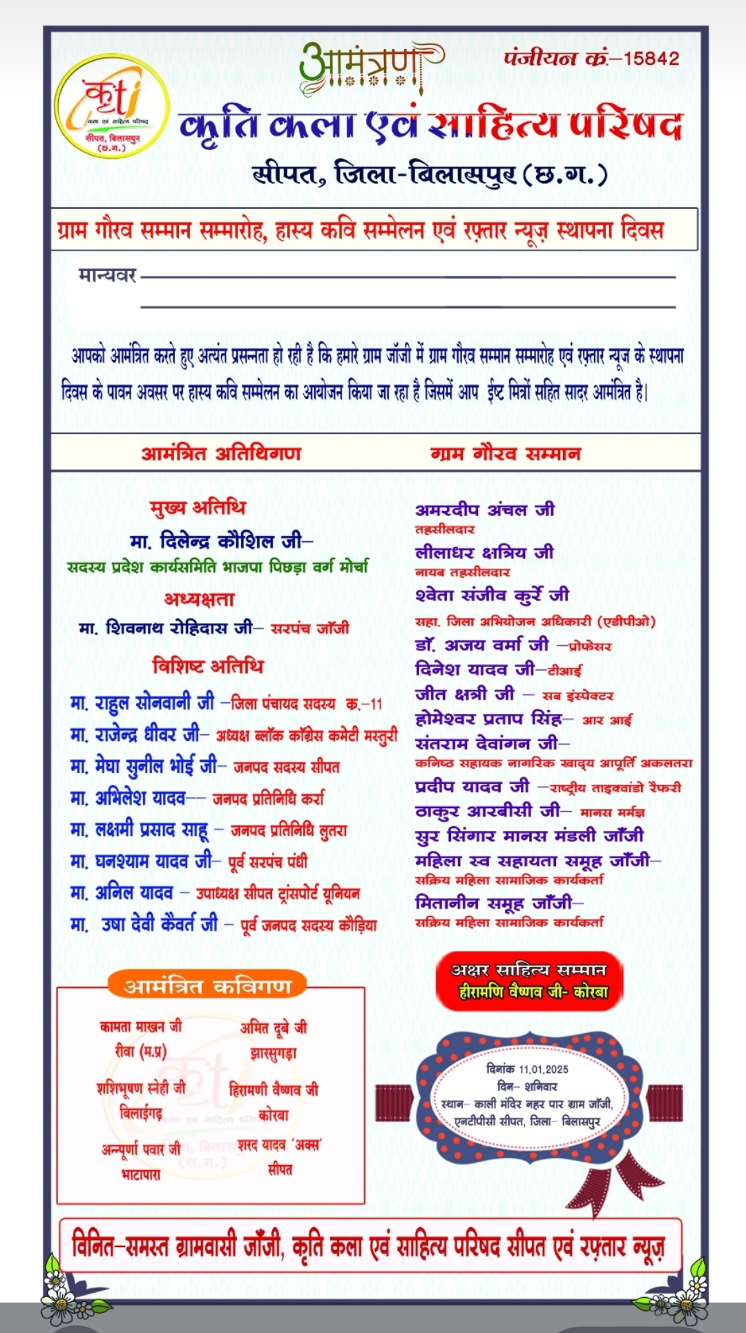 जांजी में हास्य कवि सम्मेलन और ग्राम गौरव सम्मान का आयोजन आज..पढ़िए पूरी खबर……