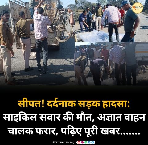 सीपत! दर्दनाक सड़क हादसा: साइकिल सवार की मौत, अज्ञात वाहन चालक फरार, पढ़िए पूरी खबर…….