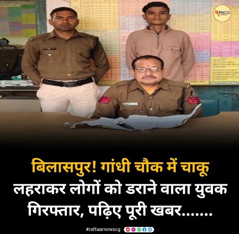 बिलासपुर! गांधी चौक में चाकू लहराकर लोगों को डराने वाला युवक गिरफ्तार, पढ़िए पूरी खबर…….