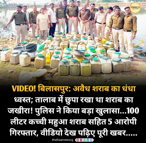 VIDEO! बिलासपुर: अवैध शराब का धंधा ध्वस्त; तालाब में छुपा रखा था शराब का जखीरा! पुलिस ने किया बड़ा खुलासा…100 लीटर कच्ची महुआ शराब सहित 5 आरोपी गिरफ्तार, वीडियो देख पढ़िए पूरी खबर…..